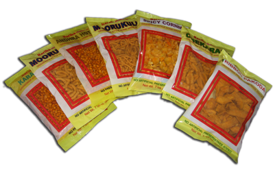 Our line of food products range from Chekkalu, Karapoosa, Moorukulu, Ribbon Pakodi, Chekralu, in 200 grams (7.1 Oz.) packages and are available in most of the Indian Grocery stores all over USA.